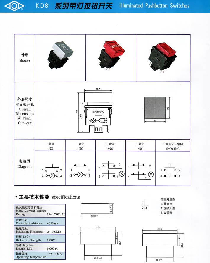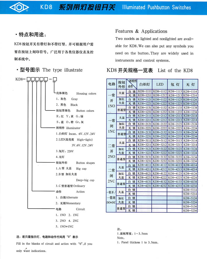 • KD8系列帶燈按鈕開(kāi)關(guān) 產(chǎn)品型號(hào):KD8系列帶燈按鈕開(kāi)關(guān)
