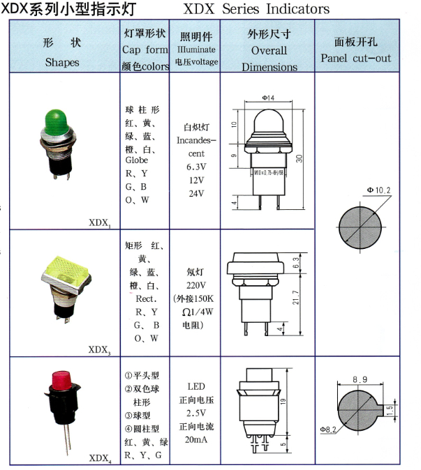 • XDX系列小型指示燈 產(chǎn)品型號(hào):XDX系列小型指示燈